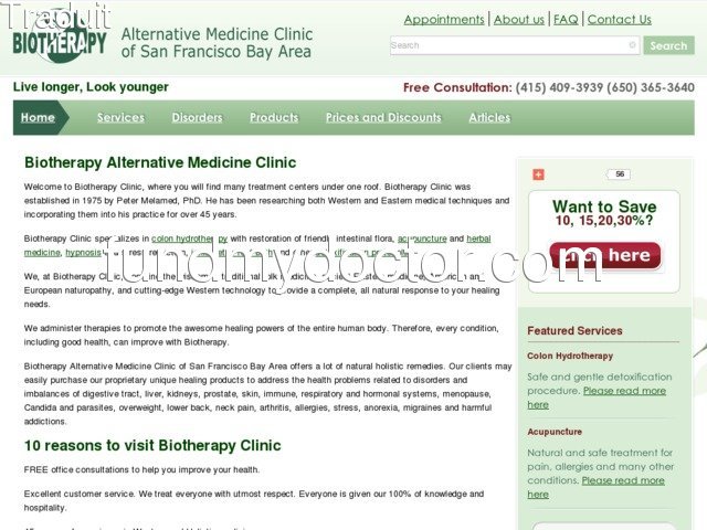 Alternative holistique des services médicaux dans la Baie de San Francisco - Biothérapie Clinique à San Francisco: l'Hydrothérapie du Côlon, de la Restauration de l'Amicale de la Flore Intestinale, l'Acupuncture et le Soulagement de la Douleur, de la Phytothérapie, de la Peau du Visage