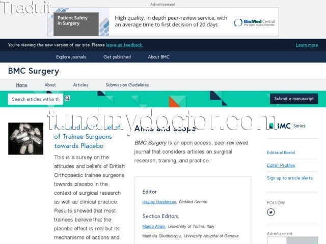 BMC Chirurgie | page d'Accueil - <p><i>BMC Chirurgie</i> est une partie de la <i>BMC</i> de la série qui publie spécifiques à des revues axées sur les besoins des différentes communautés de recherche à travers tous les domaines de la biologie et de la médecine. Nous ne faisons pas les décisions de la rédaction sur la base de l'intérêt d'une étude ou de ses effets probables. Les études doivent être scientifiquement valide; pour les articles de recherche cela comprend scientifiquement la question de recherche, l'utilisation de méthodes appropriées, et de l'analyse, et à la suite de la communauté a accepté les normes pertinentes pour le domaine de la recherche.</p><p>critères Spécifiques pour les autres types d'articles peuvent être trouvés dans les directives de soumission.</p><p><i>BMC série - ouvert, inclusif et de confiance</i>.</p>